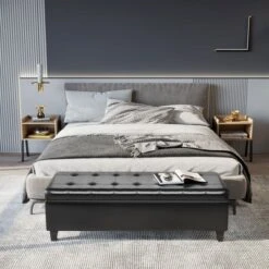HOMCOM Large 51″ Tufted Faux Leather Ottoman Storage Bench For Living Room, Entryway, Or Bedroom