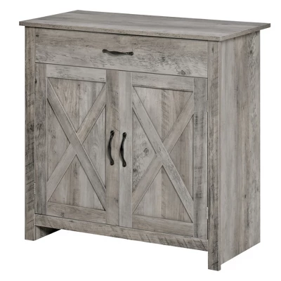Need a little extra storage in your home to organize clutter? This HOMCOM storage sideboard can provide what you need in any room of your home. This sideboard has crossbuck doors and a distressed wood-grain making for a great accent piece to your farmhouse décor. The top shelf, adjustable shelf storage cabinet, and drawer offer storage for dishes, plastic containers, and glasses. Elevate your dining, living, or bedroom with this sideboard cabinet from HOMCOM.