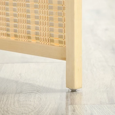 Create a cozy and private space with this bamboo room divider from HOMCOM. The privacy screen is made with bamboo and solid wood for a touch of contemporary and zen decor for your home. Includes two support shelves that can be used for storing items or displaying decorative pieces. This screen enables you to create a small enclosed private space within a corner or along a wall.