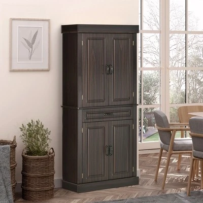 HOMCOM 71″ Freestanding Kitchen Pantry With 4 Doors, And 2 Large Cabinets, Tall Storage Cabinet With Wide Drawer For Kitchen Dining Room