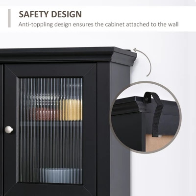 Create a neat and tidy kitchen with this tall cabinet from HOMCOM. It has 4 doors with adjustable shelves behind them, 1 large drawer, and 1 middle countertop to provide ample storage space for dishes, cutleries, and other kitchen supplies. With its compact design and greater storage capabilities, this freestanding pantry cabinet is the perfect companion for your kitchen.