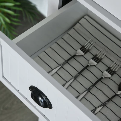 Creating a stylish kitchen storage space has never been easier with HOMCOM kitchen storage cabinets. Its traditional design fits well with your existing home decor and can be used in the kitchen, pantry, closet, garage, or bathroom to create additional storage. A deep, easy-gliding drawer separates two large cabinets with magnetic closure doors and adjustable shelving inside. Add much-needed storage to your home kitchen with this truly functional kitchen pantry from HOMCOM!