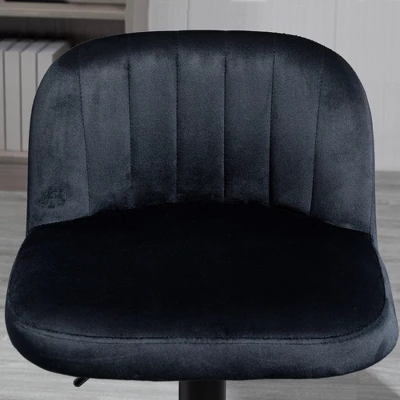 HOMCOM Adjustable Bar Stools Set Of 2, Velvet Counter Height Barstool, Upholstered Kitchen Stool With Swivel Seat, Steel Frame, Footrest For Kitchen Counter And Dining Room, ‎Black