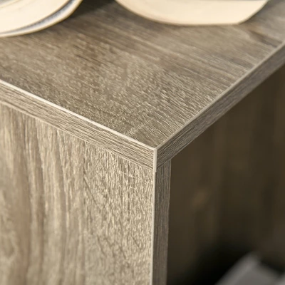 Add a touch of style and flair with this decorative and convenient C-shaped side table from HOMCOM. The table can be used as a spot to place your books, laptop, drinks, and more. Enjoy an end table that doesn’t take up too much space. The table is compact and suitable for small living spaces. The bottom and side storage areas help you keep your belongings within easy reach. Use this table in the living room, bedroom, office and more.
