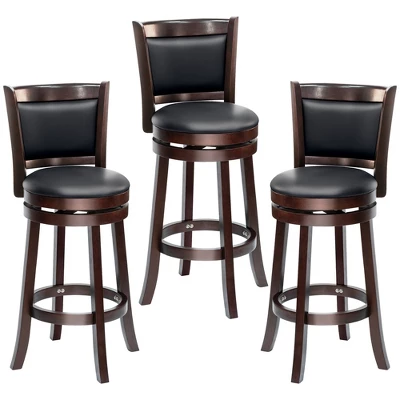 Inspired by traditional style furnishings, this barstool is a masterpiece that adds elegant glamour to your home. The padded mid-size back, PU leather upholstered seating and footrest ring provide high seating comfort, while the swivel seat ensures free rotation. Its rubberwood frame delivers stability to this bar chair stool. Attached to it are protective feet that help keep this chair standing upright without wobbling. Upgrade your home bar space with HOMCOM.