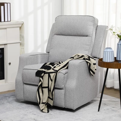 Provide an easy, comfortable spot to charge your phone with the USB port built into the side of this chair recliner. Thick sponge padding and lightweight breathable linen-touch fabric ensure long-lasting top-notch relaxation. With only 2.75″ needed between the wall and the seat back, you can keep your living room open and save floorspace. With a 150 degree reclining angle, footrest support, and an ergonomic backrest, this HOMCOM furniture assures feel-good down time.