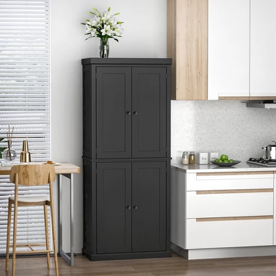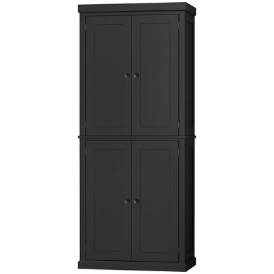 HOMCOM Freestanding Modern 4 Door Kitchen Pantry, Storage Cabinet Organizer With 6-Tier Shelves, And 4 Adjustable Shelves, Black