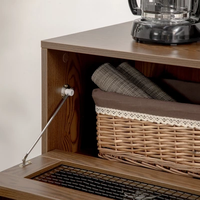 HOMCOM Industrial Buffet Cabinet, Kitchen Sideboard With Metal Grid Flip Drawer, 2-Tier Cabinet, Adjustable Shelf For Living Room, Dining Room, Walnut