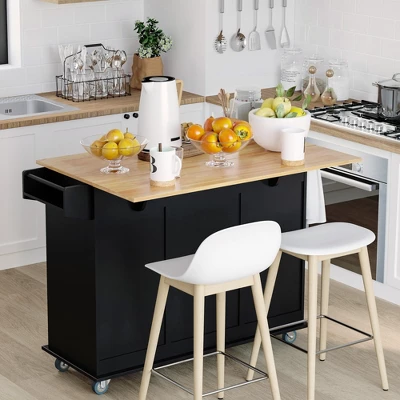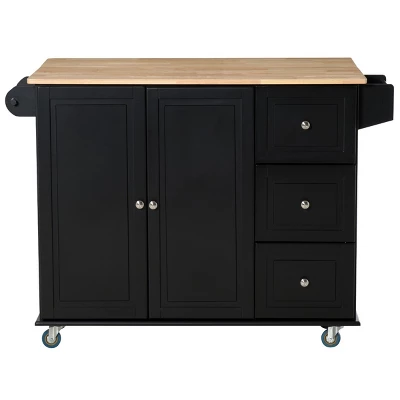 HOMCOM Mobile Kitchen Island Storage Trolley Cart On Wheels With Dropleaf Top, Towel/Spice Rack, 3 Drawers, 2-Door Cabinet