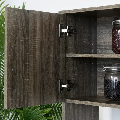 - Anti-Topple: This freestanding pantry cabinet features an anti-toppling design and can be fixed to the wall to prevent it from tipping over.