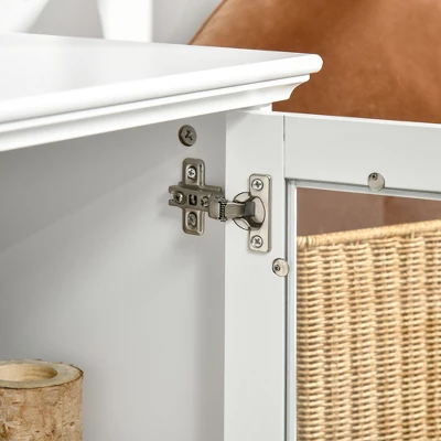 Upgrade your living room and entertainment area with this HOMCOM TV cabinet. The pure white makes the unit a beautiful focal in bedroom, living room, or other places. Cupboards with doors and drawers provide ample storage space. Depending on your preference and needs, they can be used to keep a game controller, cable box, CDs, and video games. Get organized, and control clutter with this HOMCOM media stand.