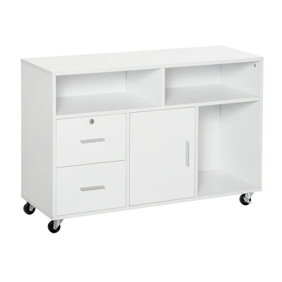 HOMCOM Printer Stand Home Office Mobile Cabinet Organizer Desktop With Caster Wheels, 2 Locking Breaks And Drawer