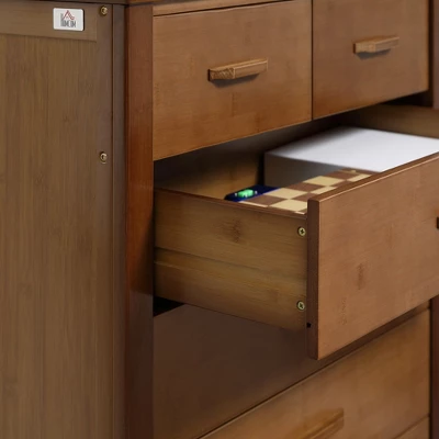 HOMCOM Tall Dresser For Bedroom, 6 Drawer Dresser, Chest Of Drawers With Bamboo Frame, Brown