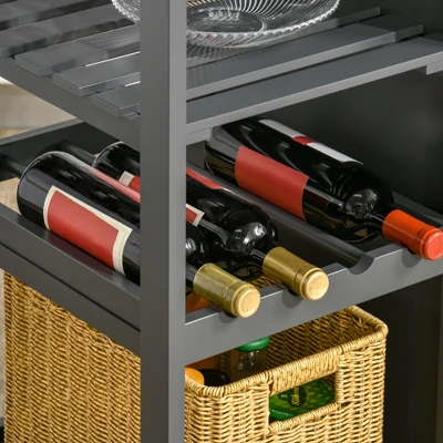 HOMCOM Utility Kitchen Cart, Rolling Kitchen Island Storage Trolley With Rack, Shelves, Drawer And Cabinet, Gray