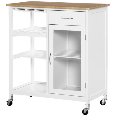 HOMCOM Utility Kitchen Cart, Rolling Kitchen Island Storage Trolley With Rack, Shelves, Drawer And Cabinet, White