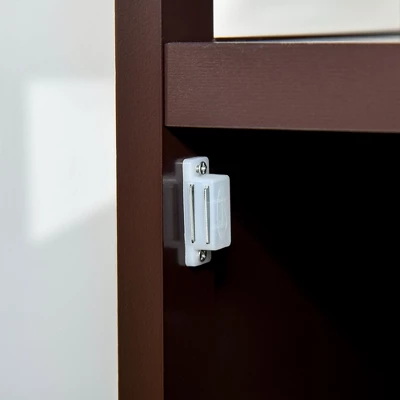 Ready to organize your dining space? This HOMCOM wine cabinet gets you ready in no time. This bar cabinet combines both open and closed storage for wine bottles and daily essentials. An adjustable shelf accommodates various storage needs. The acrylic door offers a beautiful way to display your collectables or dishes while keeping the dust off. The elevated base protects your wine rack cabinet from getting damaged during a spill. Add functionality to your dining area with HOMCOM.