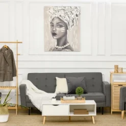 HOMCOM Hand-Painted Canvas Wall Art For Living Room Bedroom, Painting Gold African Woman, 39.25″ X 31.5″