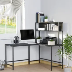 HOMCOM 4 Tier Bookshelf Utility Storage Shelf Organizer With Back Support