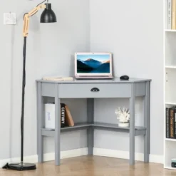 HOMCOM Corner Computer Desk With Steel Frame For Small Spaces, Writing Desk For Workstation, Black