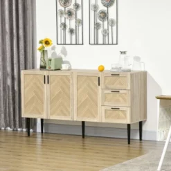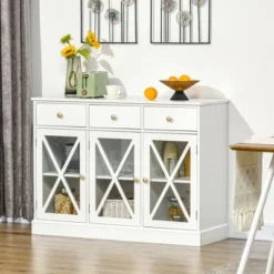 HOMCOM 47″ Modern Storage Cabinet Buffet Sideboard With Drawers And Louvered Doors- White