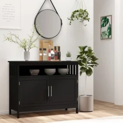 HOMCOM Kitchen Credenza & Sideboard Buffet Cabinet With 2 Glass Doors & Storage Shelves